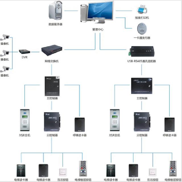 電梯門禁控制系統(tǒng),是在不改變電梯操作面板的硬件基礎(chǔ)上,通過對(duì)電梯門禁輸出的繼電器干結(jié)點(diǎn)來控制電梯樓層按鈕的開 通和關(guān)斷。系統(tǒng)對(duì)于乘梯人員進(jìn)行發(fā)卡授權(quán),憑卡刷卡操作到達(dá)指定樓層。來訪人員通過呼叫系統(tǒng),受訪人確認(rèn)后給予電梯權(quán)限信 號(hào),自動(dòng)到達(dá)要訪問的樓層。來訪人也可以通過總臺(tái)登記,領(lǐng)取臨時(shí)卡就可使用電梯。業(yè)主通過刷卡和按互訪按鈕,能到達(dá)任意樓 層,與其他業(yè)主進(jìn)行互訪。