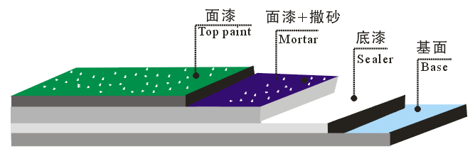 5、表面在滾涂兩遍環(huán)氧色漆,使之均勻滲透至底層,與石英砂結合牢固。